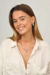 L’équilibre entre la géométrie métallique et la douceur nacrée crée un bijou moderne, élégant et très expressif malgré sa simplicité.