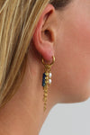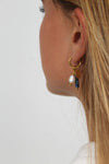 Les boucles Barbara associent la brillance de l’acier inoxydable doré à la profondeur des pierres bleues, dans une version asymétrique et transformable.