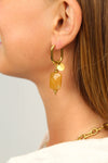 Les créoles Maya transformables affichent une forme rectangulaire audacieuse, sublimée par des pendentifs en aventurine jaune. Leur design modulable permet de les porter avec ou sans pierre, pour un look minimaliste ou plus éclatant.