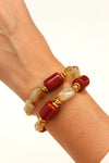 Le bracelet Édith associe deux pierres citrine lumineuses à une pierre cylindrique rouge brique en pièce centrale.