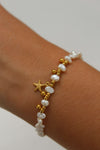 Le bracelet Hortense est une invitation à l’évasion, un bijou délicat qui capture l’esprit de l’océan. Composé de perles d’eau douce irrégulières, il révèle un charme unique, sublimé par un petit pendentif en forme d’étoile de mer dorée.