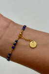 Le bracelet Leïla est une création fine et lumineuse, pensée pour accompagner vos poignets avec légèreté et subtilité. Composé de lapis lazuli bleu profond et de maillons dorés en acier inoxydable, il se porte aussi bien seul qu’en accumulation avec d’autres bracelets.