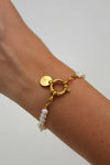 Le bracelet Hortense est un essentiel bohème, pensé pour s’accumuler sans modération. Orné de perles d’eau douce irrégulières, il incarne l’authenticité et l’élégance naturelle. Son design épuré en fait un allié parfait pour un look estival, que ce soit au bord de l’eau ou en ville.
