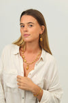 Le bracelet transformable Maya marie les grosses mailles dorées à une pierre d’aventurine jaune, pour une touche d’énergie et de lumière. Fort et féminin, il se porte seul ou combiné avec d’autres bracelets de la collection.