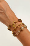 Le bracelet transformable Ophélie est composé uniquement de perles ovales de quartz rutile, dont les filaments dorés capturent la lumière avec délicatesse.