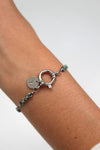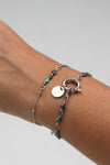 Le bracelet Perrine marie la modernité de l’acier inoxydable argenté aux nuances uniques de la turquoise africaine, pour un style intemporel et élégant.