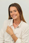 Le collier Chiara met en valeur la tourmaline, pierre naturelle aux reflets subtils et changeants. Monté sur une fine chaîne en acier inoxydable argenté, il incarne la simplicité élégante et la douceur du quotidien.