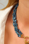 Le collier transformable Arielle marie deux pierres que tout oppose mais qui s’unissent avec harmonie : la profondeur vibrante de l’apatite bleue et la chaleur dorée de la citrine jaune.