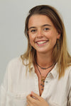 Le collier transformable Esmée se distingue par ses perles noires pendantes, qui captent la lumière avec subtilité. En acier inoxydable doré, il offre un design élégant et fluide, idéal pour superposer ou sublimer une tenue de soirée.