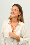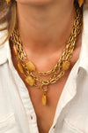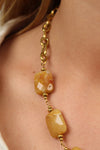 Le collier transformable Maya combine la puissance des grosses mailles dorées à la douceur de l’aventurine jaune. Sa forme modulable permet de le porter seul, en superposition ou avec pendentif. Un bijou solaire, audacieux et élégant.