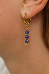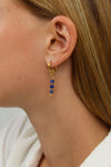 Les créoles Leïla sont de petits anneaux dorés agrémentés de pendentifs en lapis lazuli, soigneusement sélectionnés pour leur intensité naturelle. Grâce à leur système transformable, vous pouvez porter ces boucles avec ou sans les pierres, pour varier les styles selon vos envies.